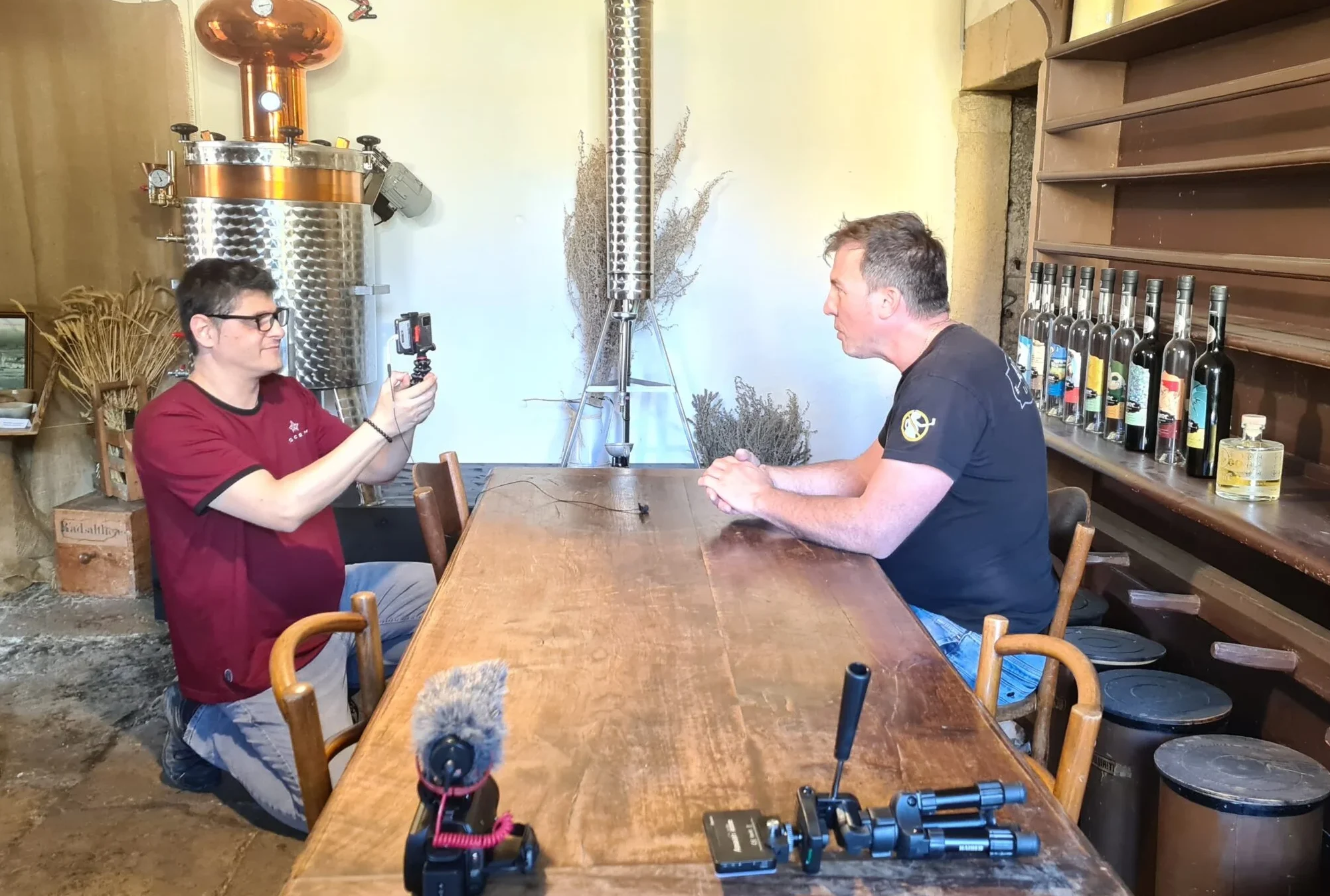 Nous travaillons divers types d’appareils pour une variation des prises de vues; appareil photo+Micro (CANON/RODE), caméscope SONY, smartphones de dernière génération et ‘Video-Rig-Kit’ (matériel de vlogging avec stabilisation). Nous avons un drone DJI pour les prises de vues aériennes.